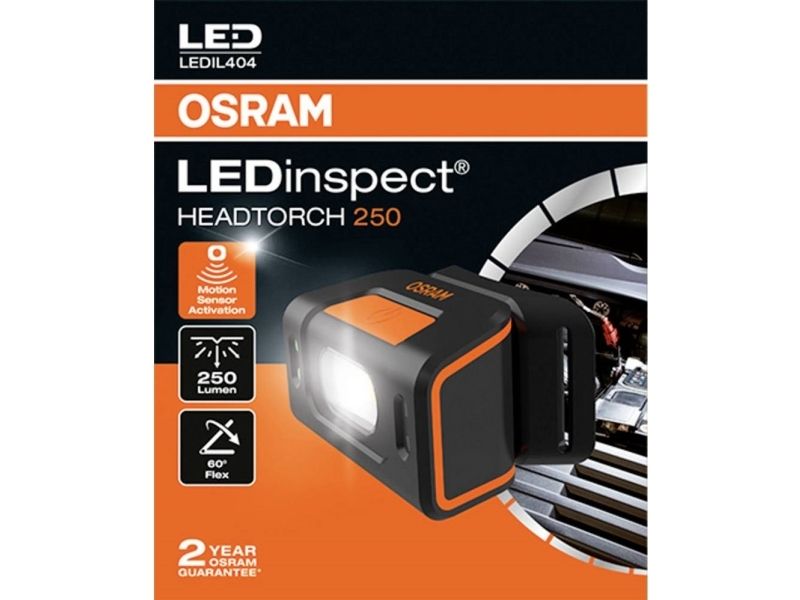 HEADTORCH250 pandelampe fra Osram er en højkvalitets pandelampe, som er perfekt til både professionel og privat brug. Den har to lysfunktioner; høj op til 250lm og lav op til 140lm, som sikrer et lysudbytte, der passer til en lang række opgaver. Pandelampen har integreret bevægelsessensorteknologi, som giver mulighed for problem- og håndfrit arbejde, og en vippevinkel på 60° giver fleksibilitet til at give lys, præcis hvor det er nødvendigt. Pandelampen har et genopladeligt batteri, med en driftstid op til 3,5 timer ved høj effekt og op til 6 timer ved lav effekt. Et USB Type-C opladningskabel og tilsvarende strømadapter er inkluderet i leveringen.
