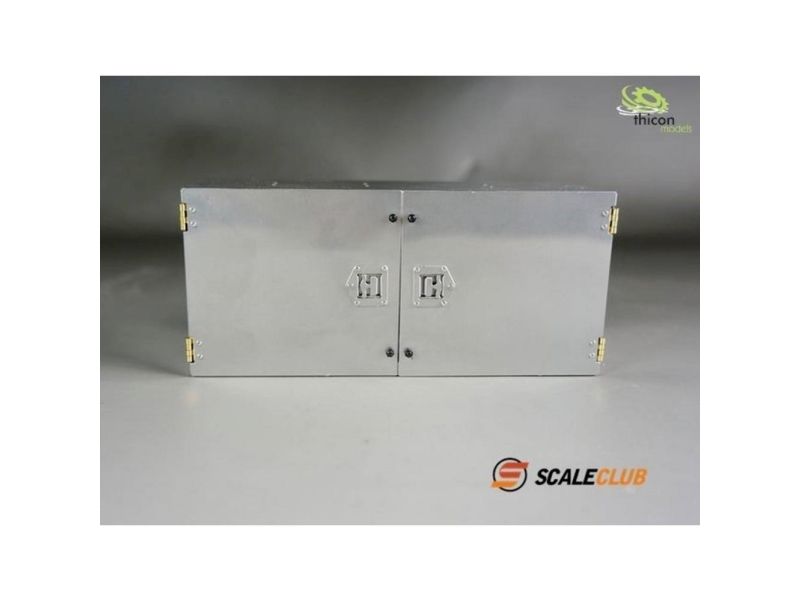 1:14 støvboks 141 mm med dobbeltdøre V2A 1:1 støvboks med dobbelfløjdøre fra V2A. Dørene kan åbnes og holdes ved hjælp af magneter. Egner sig ideal til at være et batteriopbevaringsrum.
