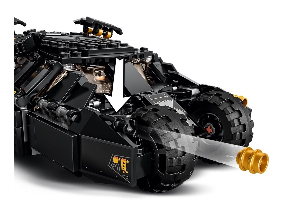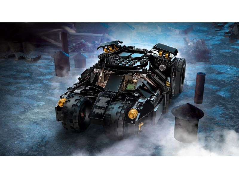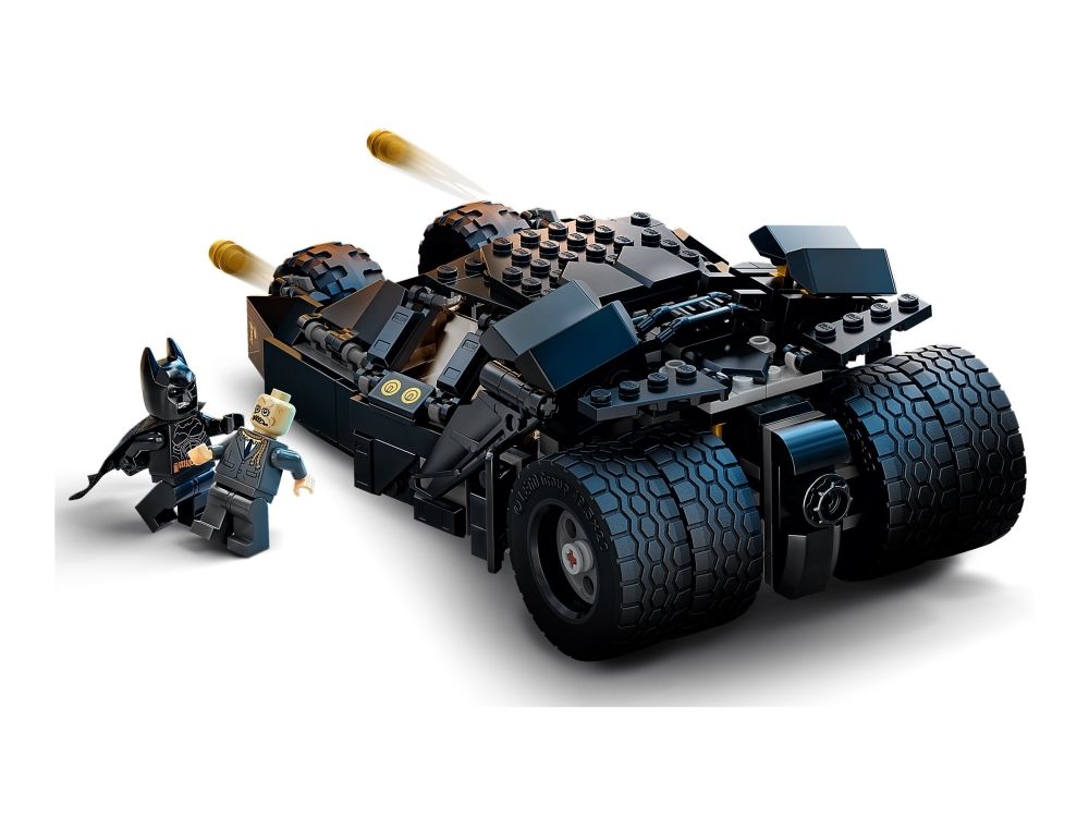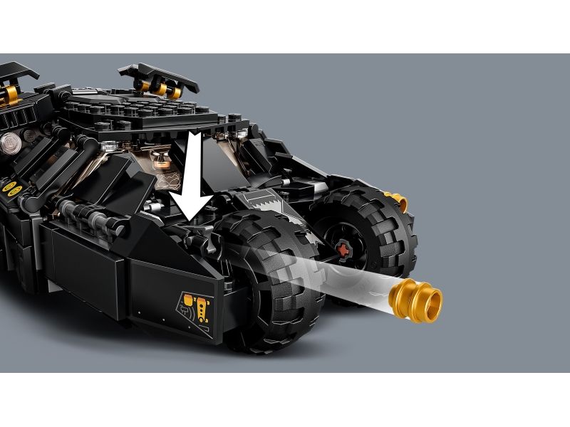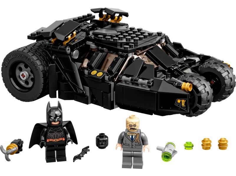 Den pansrede batmobilen Tumbler fra Batman Dark Knight™-trilogien er et av kinohistoriens mest legendariske kampkjøretøy. Tumbler har tak som kan åpnes, slik at du får tilgang til fører- og passasjersetet samt kontrollpanelet. To knotteskytere er montert foran på kjøretøyet, som til og med har et oppbevaringsrom for en batarang. Inneholder minifigurer av Batman med batarang, skyter med entrehake og et alternativt «mareritthode», og Scarecrow med knotteskyter og beholder med giftig fryktgass. Når slaget er vunnet, passer Batmobilen Tumbler perfekt som utstillingsmodell på barnerommet.