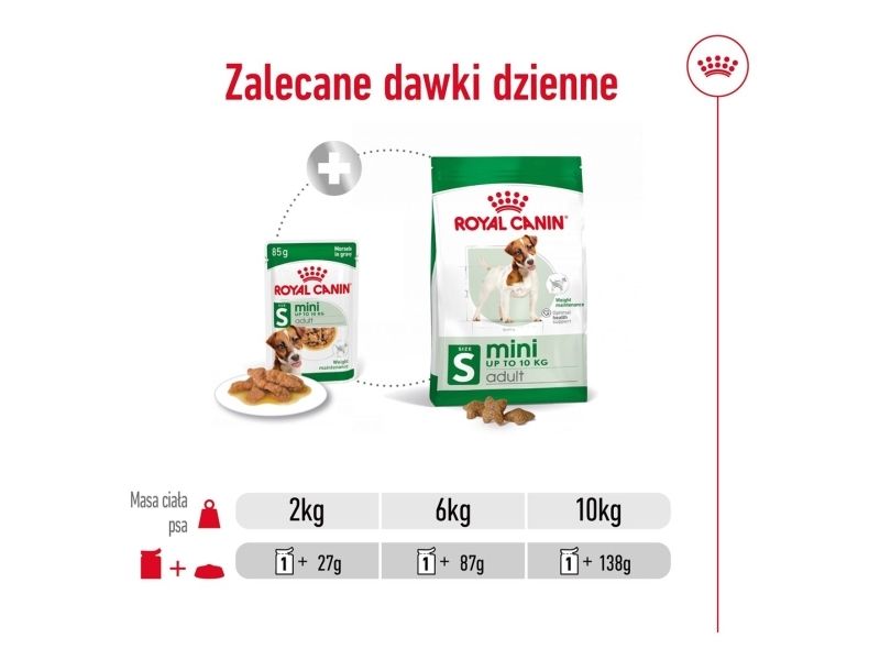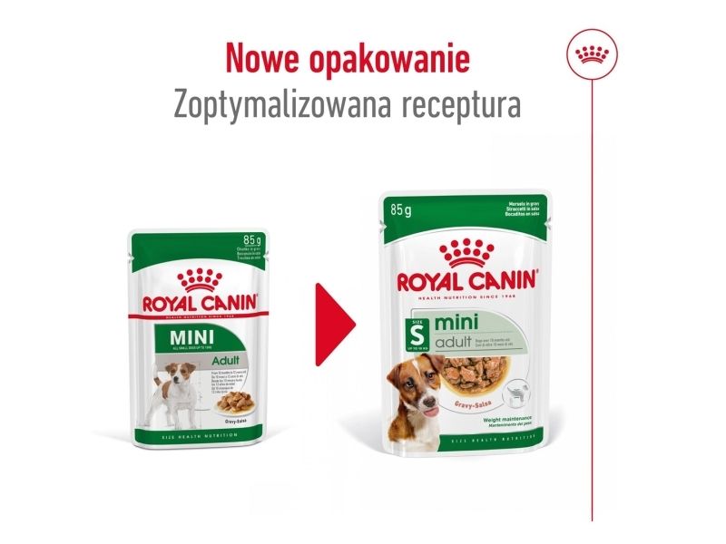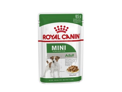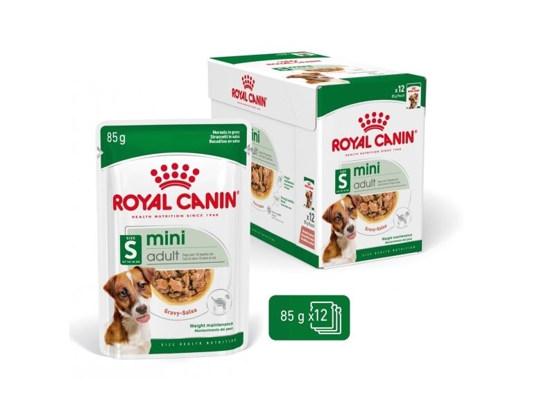 ROYAL CANIN® Mini Adult in Gravy is specially formulated with all the nutritional needs of your mini adult dog in mind. ROYAL CANIN® Mini Adult in Gravy is suitable for all small dogs aged between 10 months – 12 years that weigh up to 10kg. The formulation of specific nutrients in ROYAL CANIN® Mini Adult in Gravy helps to support your dog’s digestive health, as well as helping to maintain a good balance of intestinal flora. The carefully adapted energy content in ROYAL CANIN® Mini Adult in Gravy helps to maintain an ideal weight in small breed dogs like yours. What’s more, ROYAL CANIN® Mini Adult in Gravy is also enriched with nutrients that help to support your adult dog’s healthy skin and coat condition – such as Omega-3 fatty acids EPA and DHA. To cater to each dog’s individual preferences, ROYAL CANIN® Mini Adult is also available as dry food, with crunchy and tasty kibble. If you’re considering mixed feeding, simply follow our feeding guidelines to ensure your dog gets an accurate amount of both wet and dry food for optimal benefit.