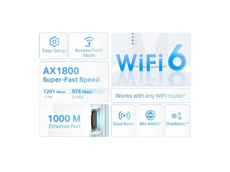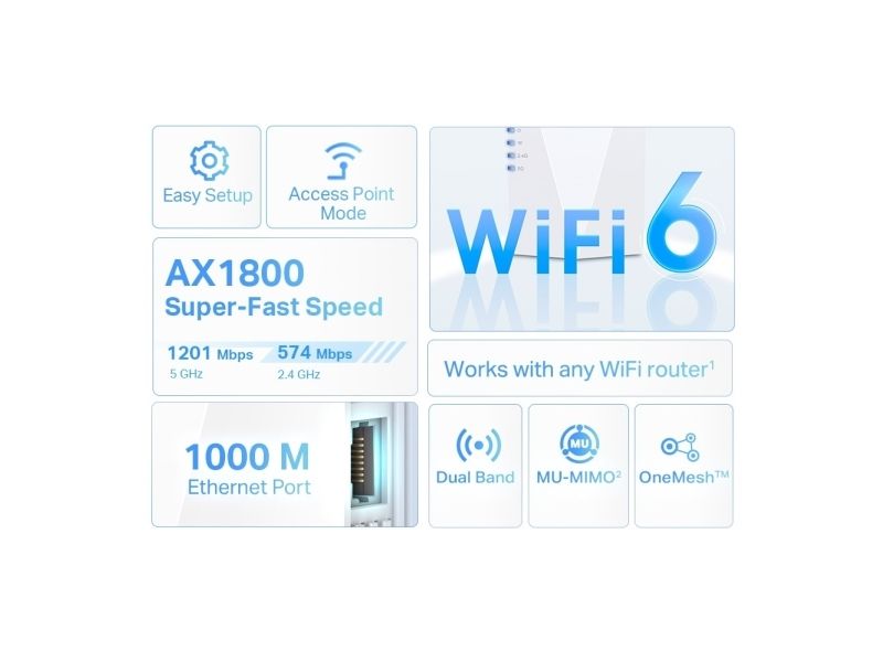 TP-Link RE600X V2 - Rekkeviddeutvider for Wi-Fi - Wi-Fi 6 - 2.4 GHz, 5 GHz - i veggen