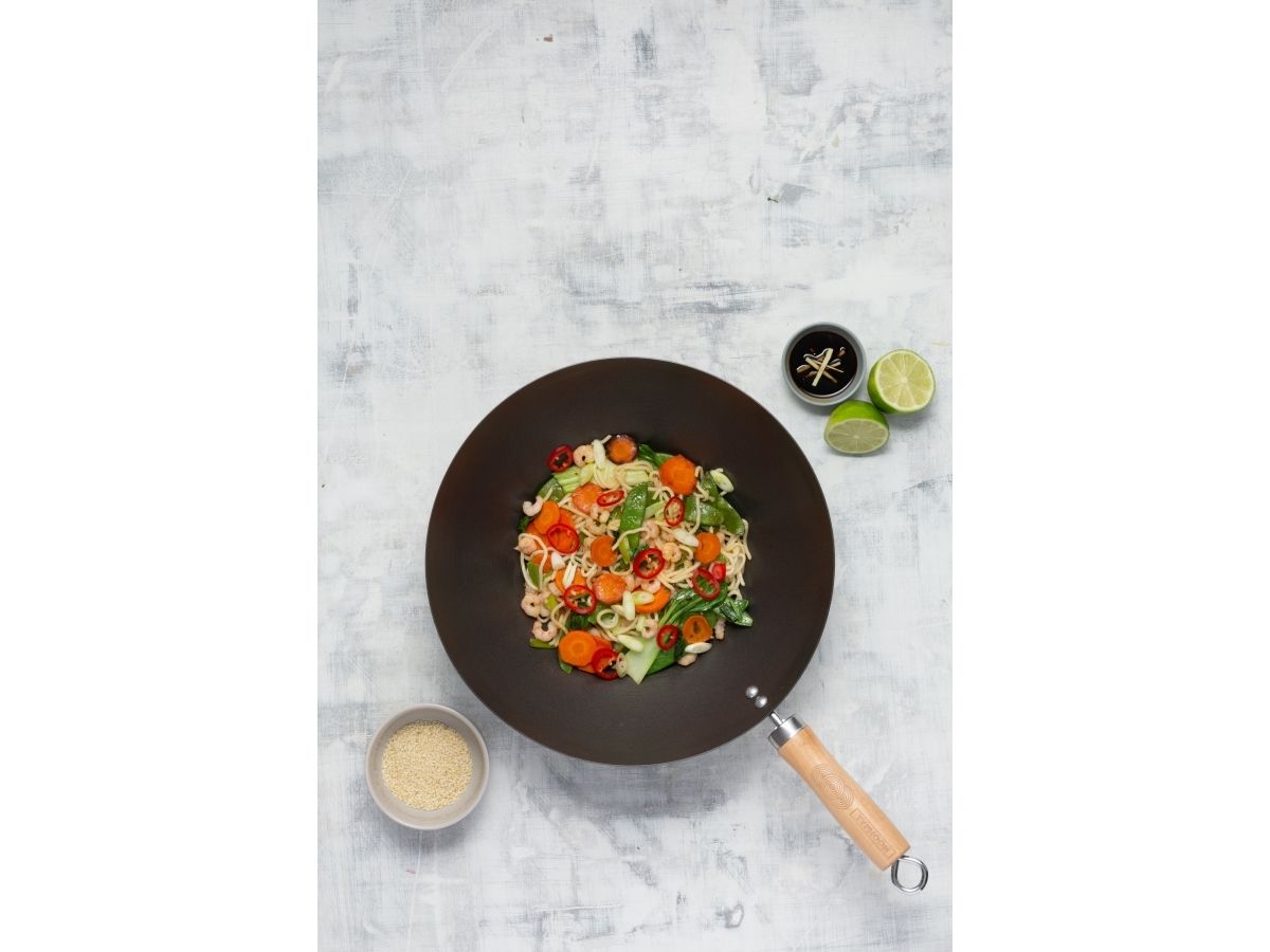har et non-stick interiør til sund og lækker madlavning med mindre olie og en kulstofstål krop for effektiv og jævn temperatur.