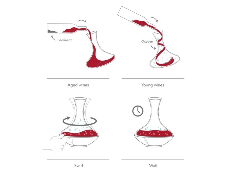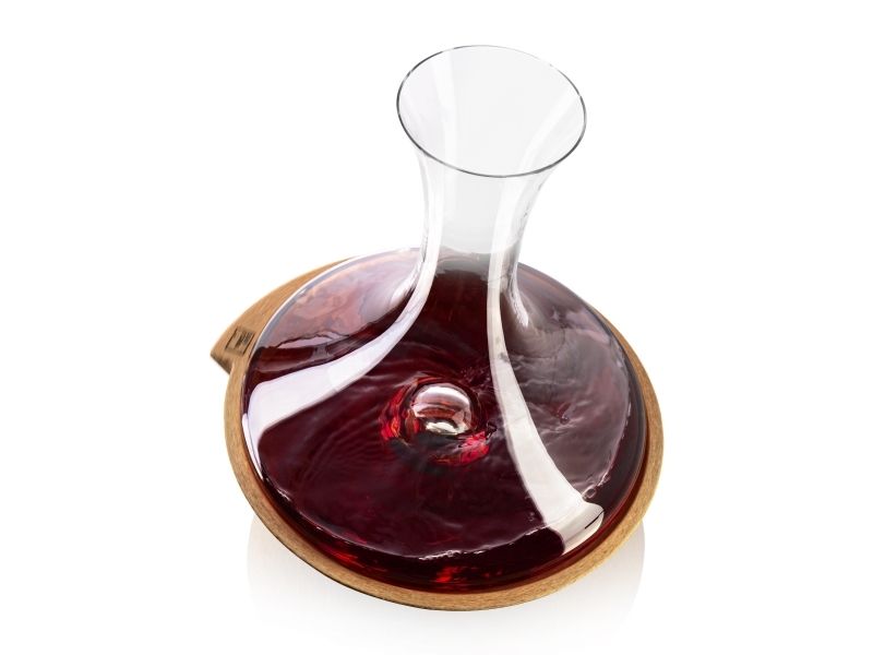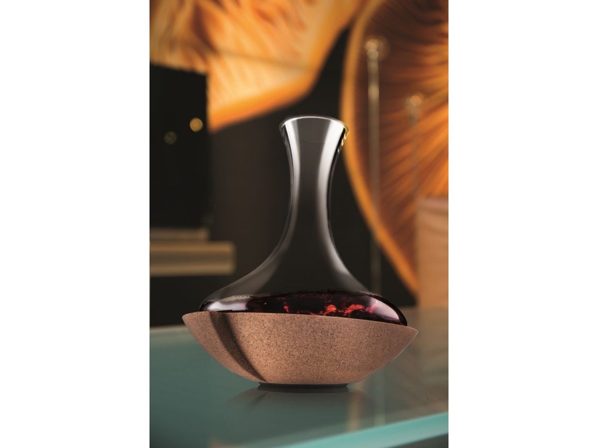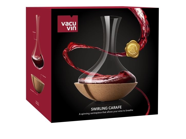 Swirling Carafe er et roterende midtpunkt, der lader vinen ånde på en særlig og elegant måde. Hvirvlerne hjælper med at frigive de forskellige aromaer i vinen for en forbedret smagsoplevelse. Krystalglaskaraflen og korkbunden giver et eksklusivt udseende. Den unikke mekanisme får karaflen til at rotere i midten.
