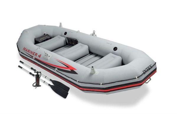 The Intex Mariner 4-Person Boat is as good as it gets. Constructed of SUPER TOUGH™ PVC, you can take this inflatable boat for a relaxing day on the lake, whether you are fishing, camping, or just cruising! Lightweight and compact, this boat is a snap to assemble. This summer take the fun of boating wherever you go!
