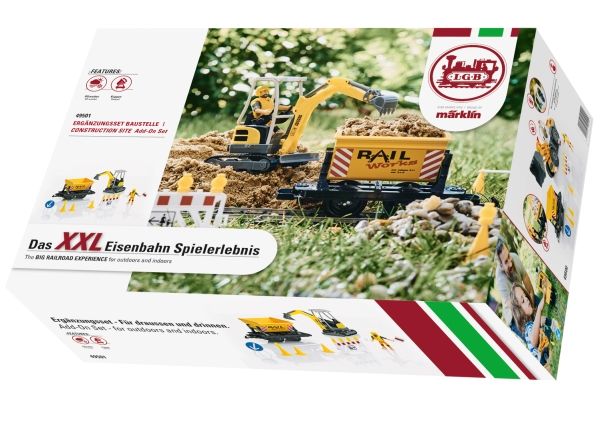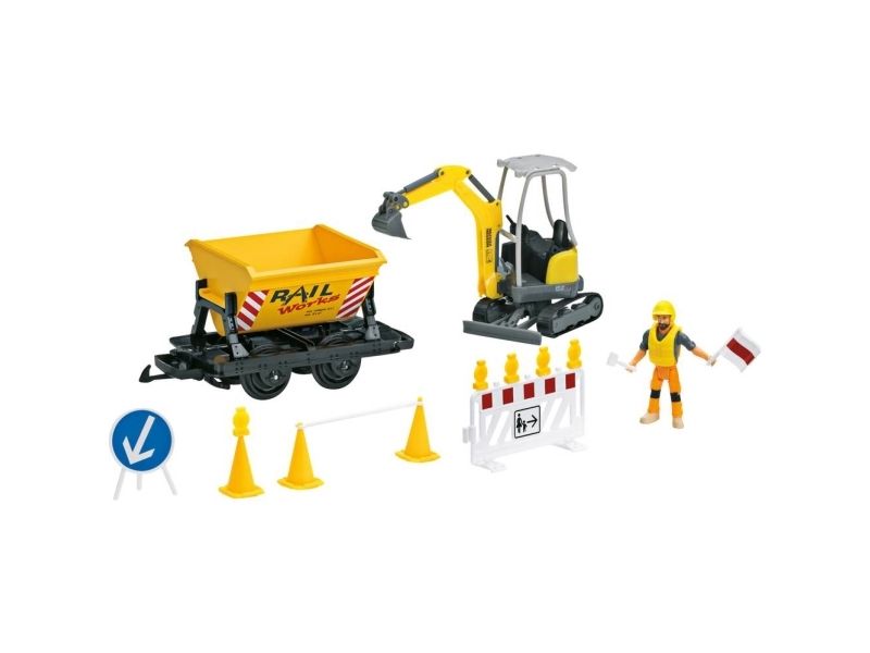 This extension set for the construction site train contains another dump car, a power shovel with a manually movable shovel, a toy figure, and a number of accessories typical for a construction site such as barriers or signs. The stickers included with this set can be used to decorate the dump car. Length of the dump car 17 cm / 6-11/16". This extension set is ideal to expand the 70503 construction site set.