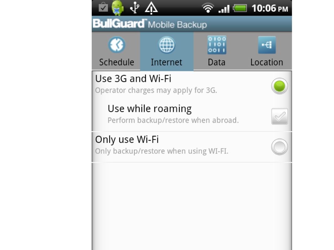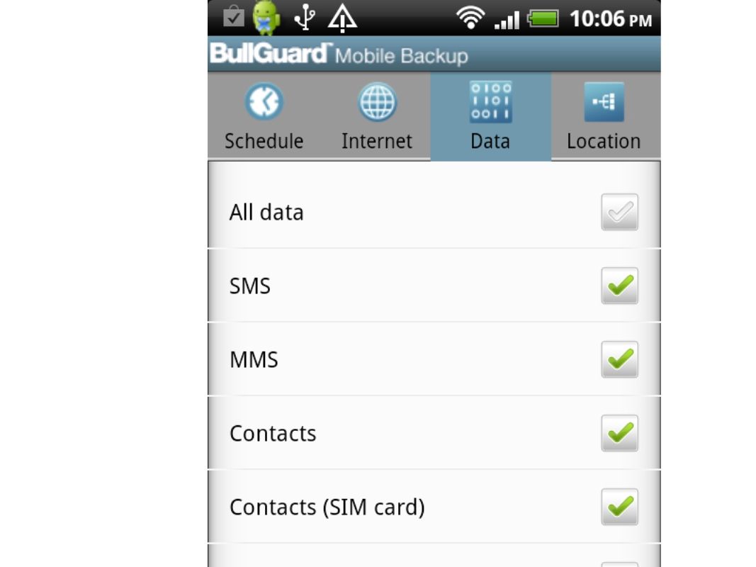 Glemmer du ofte å sikkerhetskopiere nye elementer på telefonen? Nå slipper du å tenke på den oppgaven mer. Overlat alt til BullGuard Mobile Backup! Med funksjonen Set and Forget kan du angi at sikkerhetskopiering skal kjøre så ofte du ønsker det.