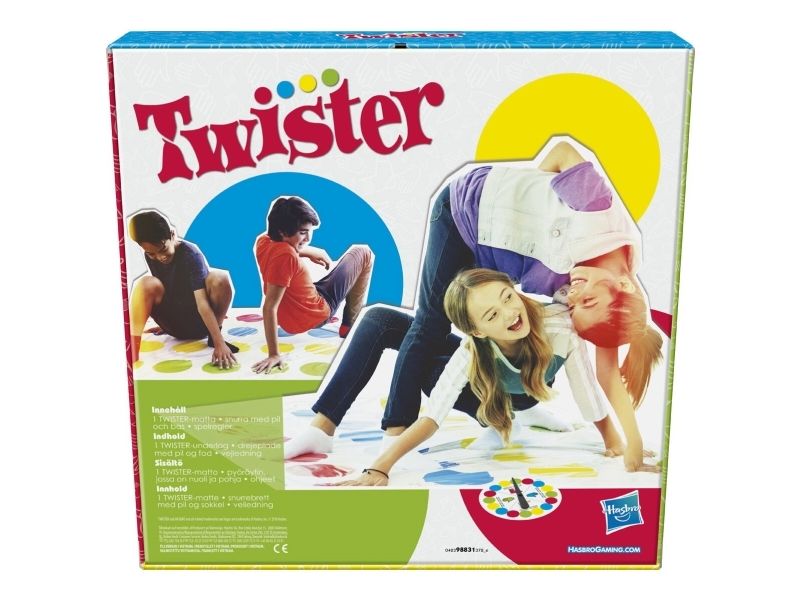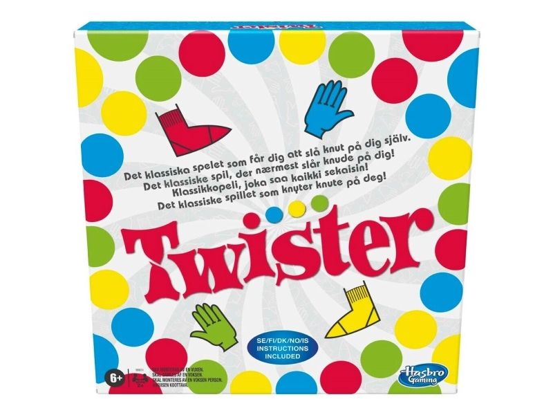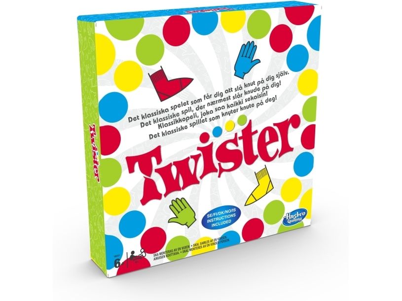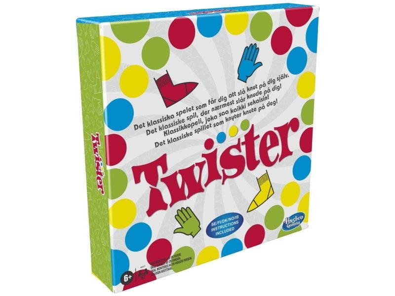 Gjør enhver fest eller familiekveld ekstra gøy med dette klassiske spillet som knyter spillerne sammen i knuter! En person snurrer snurrehjulet – se hva som skjer når spillerne prøver å holde armer og ben på matten. Høyre fot på rød! Hvem klarer det? Venstre fot grønn – hvem har den? Dersom en spillers kne eller albue rører matten, eller de faller, er de ute. Siste spiller igjen vinner! Hasbro Gaming og alle tilhørende begreper er varemerker som tilhører Hasbro.