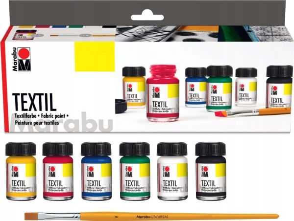 Marabu 1716000000087, Sort, Blå, Grønn, Rød, Hvit, Gult, Tekstil maling, Væske, 90 ml, 6 stykker