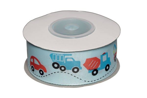 Dekobånd lysblå m/ køretøjer 25mm 10m