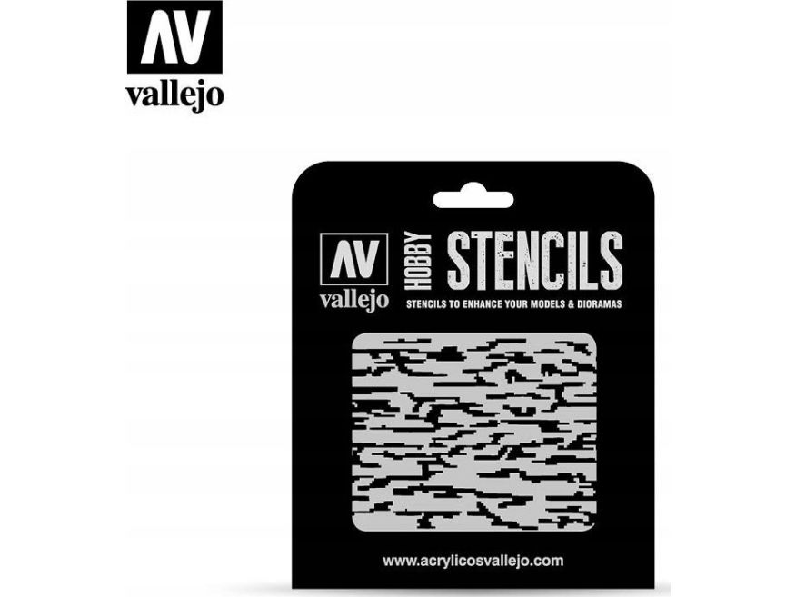 Vallejo Stencils offers a wide selection of references and themes for modellers and crafters. Translucent and flexible material, adapts easily to the surfaces of the model. Washable, easy to handle, the stencils facilitate the reproduction of all kind of hobby effects and textures. Fantasy and military dioramas, tanks, buildings, aircrafts, spaceships, Sci-Fi, these can now be enhanced with details for interesting and simple results. Available in several categories: . AFV Markings: Badges, numbers, slogans, signs, unit and nationality markings designed for historical and modern armoured vehicles. . Camouflages: Patterns for armoured vehicles and aircraft camouflages; available in several scales. . Air Markings: Badges, numbers, unit and nationality markings, registries and surface effects designed for historical and modern aircraft. . Lettering & Signs: Traffic signs, fonts and signs for dioramas, adverts, retail signs and graffities. . Sci-Fi & Fantasy: Badges, numbers, effects, panels and patterns designed for Sci-Fi vehicles and spaceships. . Texture Effects: Splashes, textures, cracks, stains and other physical texture and effects.