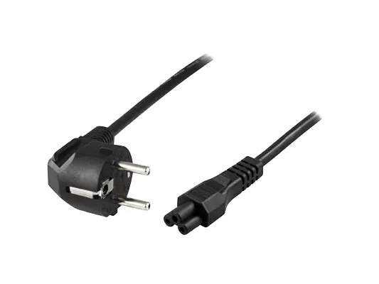 DELTACO grounded LSZH device cable for connection between unit and wall socket, 2m, angled CEE 7/7 to straight IEC 60320 C5, max 250V/10A, black