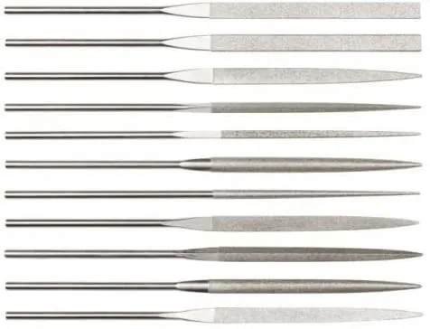 Diamant-nålefile kan anvendes universelt i værktøjsbyggeri.diamant-nålefile i ekstra slank udførelse (S) egner sig særdeles godt til bearbejdning af dybtliggende konturer.Drevtyper:- Manuel indsatsAnvendelser:Egalisér- Afgratning- Overfladebearbejdning- Kantbearbejdning- Kantbearbejdning (stier, afrunding)Fjern oxidlag- EfterbearbejdningMateriale:Superlegeringer på nikkel eller titanbasis- Ferrit (magnetmateriale)- Glas- Grafit og elektrisk kul- Hårdmetal- IndsatsstålStålmaterialer med en hårdhed på over 54 HRC- Værktøjsstål- Glatte materialer- Teknisk keramik- Ferrit (magnetmateriale)- Glas- Grafit og elektrisk kul- Hårdmetal- IndsatsstålStålmaterialer med en hårdhed på over 54 HRC- Værktøjsstål- Glatte materialer- Teknisk keramik