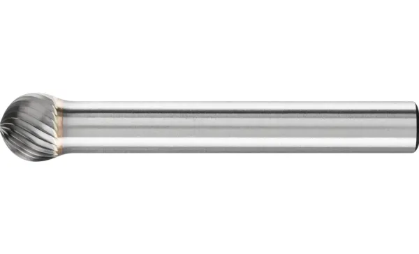 Kugleformet fræsestift iht. din 8032 med fortanding i henhold til din 8033.GL = samlet længde (massivt hårdtmetal) SL = skaftlængde (stålskaft)Drevtyper:- Krumtapakseldrev- Ligesliber- Stationære maskiner- Robotter- VærktøjsmaskineAnvendelser:- UdfræsningEgalisér- AfgratningOprettelse af gennembrydninger- Overfladebearbejdning- Fræsning- Svejsesøm bearbejdningMateriale:- Aluminiumlegeringer hårdt- NE metal hård- Bronze- TitanTitanlegeringer- Rustfrit stål (INOX)- Stål, støbestål- Hærdet, hærdet stål over 1.200 N/mm2 (over 38 HRC)- Indsatsstål- Værktøjsstål- Stål- Stål op til 1.200 N/mm2 (< 38 HRC)- Støbestål