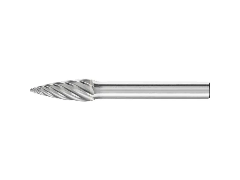 Spids bueformet fræsestift iht. din 8032, spids flad.Drevtyper:- Krumtapakseldrev- Ligesliber- Stationære maskiner- Robotter- VærktøjsmaskineAnvendelser:- UdfræsningEgalisér- AfgratningOprettelse af gennembrydninger- Overfladebearbejdning- Fræsning- Svejsesøm bearbejdningMateriale:- NE metal hård- TitanTitanlegeringer- Rustfrit stål (INOX)