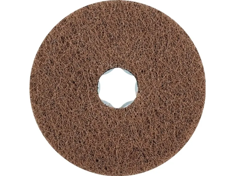 Egnet til finslibning af mellemstore og store flader og konturer samt rengøringsarbejde på metaller og lak. Giver matterede og silkemat overflader. Meget åben struktur.Drevtyper:- Vinkelsliber- Batteridrevet vinkelsliberAnvendelser:- Ru- Afgratning- Overfladebearbejdning- Rengøring- Svejsesøm bearbejdning- Struktur (mattering, stregmattering og satinering)- Trinvis finslibningAnvendelsesanbefaling:Sæt den bedste ydeevne i brug ved den anbefalede skærehastighed på 15–20 m/s. Herved opnås et ideelt kompromis mellem slibeydelse, overfladekvalitet, temperaturbelastning af emnet og værktøjsslitage.Materiale:- AluminiumCoboltbasegeringerNikkelbaslegeringer (f.eks. B. (Undtagen til brug ved anæstesi)- Bronze- TitanTitanlegeringer- Kobber- Messing- Rustfrit stål (INOX)- Termoplast- Fiberforstærket duroplaste (GfK, CFK)- Hærdet, hærdet stål over 1.200 N/mm2 (over 38 HRC)Stålmaterialer med en hårdhed på over 54 HRC- Stål op til 1.200 N/mm2 (< 38 HRC)- StøbestålProduktfordele:- Kan anvendes vådt og tørt.- Ingen tilstopning af værktøjet takket være åben struktur og høj fleksibilitet af fleecematerialet.