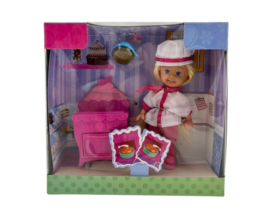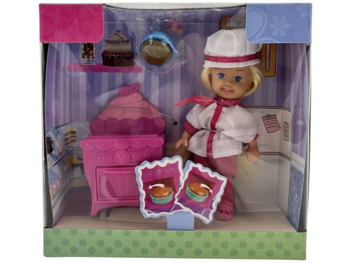 Den sødeste lille dukke er klar til at lege med dag! I sættet følger der den fineste lille kageovn og dertil en lille lækker kage. Et sjovt legesæt, som garanteret bliver en stor favorit hos de små. Dette lille dukkesæt er oplagt til rolleleg, eller som tilbehør til dukkehuse eller andet tilbehør.