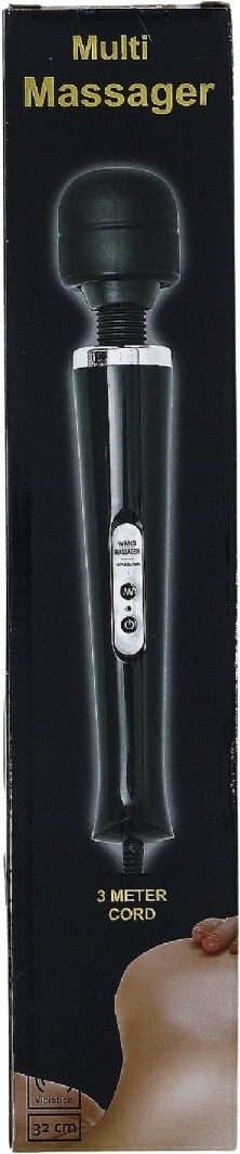 Massagestav i Sort med 3 meter lang ledning - Vibrende hoved i silikone - Massageapparat wand