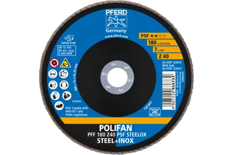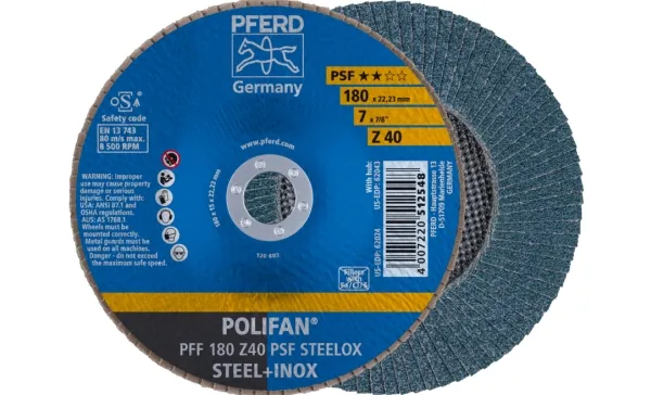 PFERD PFF 180 Z 40 PSF STEELOX, Metall, 8500 RPM, 18 cm, 10 stykker