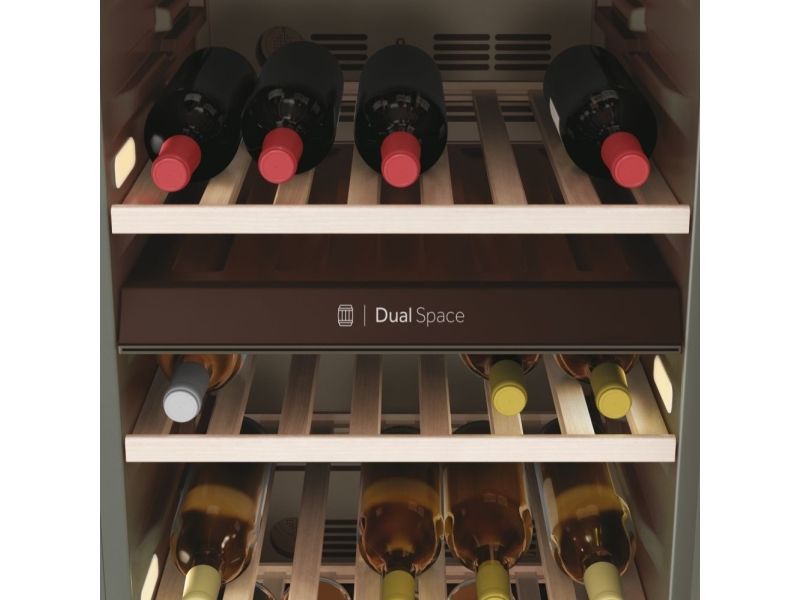 Den angivende flaskekapacitet er udregnet med en bordeauxflaske som standard og uden hylder i skabet. Dvs. at det faktiske antal af flasker som skabet kan indeholde, med hylder monteret, vil være mindre end den angivne mængde i produktets specifikationer.