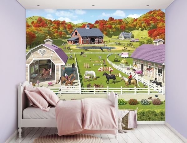Heste og pony stald er den perfekte gave til alle heste og pony glade børn, med smukke og vidunderlige heste og de sødeste ponyer og meget meget mere. Væg tapet / vægdekoration fra Walltastic er et kvalitets produkt som forvandler ethvert værelse. Walltastic er kendte for deres højdetaljeret produkter og nemmere montering. Medfølger i pakken: