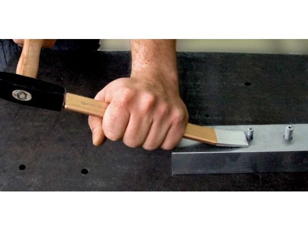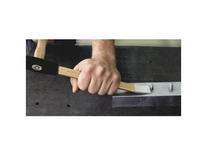 Kærvmejsel bøjet 240mm uden håndbeskyttelse, fladoval 26x7mm, skærebredde 26 mm, splittede eller svampehoved undgås via specielt sikkerhedsslaghoved, specialfremstilling forhindres MIKROisse, meget lang levetid, specialværktøjsstål smedet, hærdet og lakeret, skær, poleret blad, komplet hærdet overfører slagkraft direkte, efterslibning til hele længde, Bedre end foreskrevet af din-krav, Made in Germany