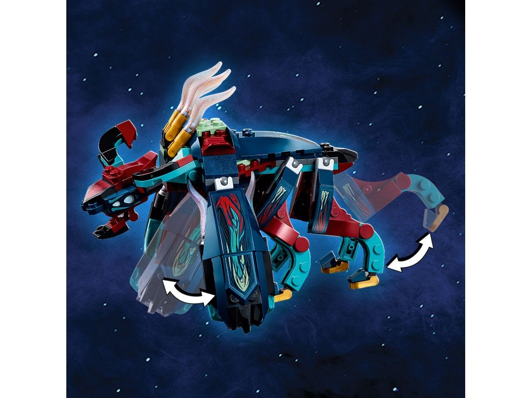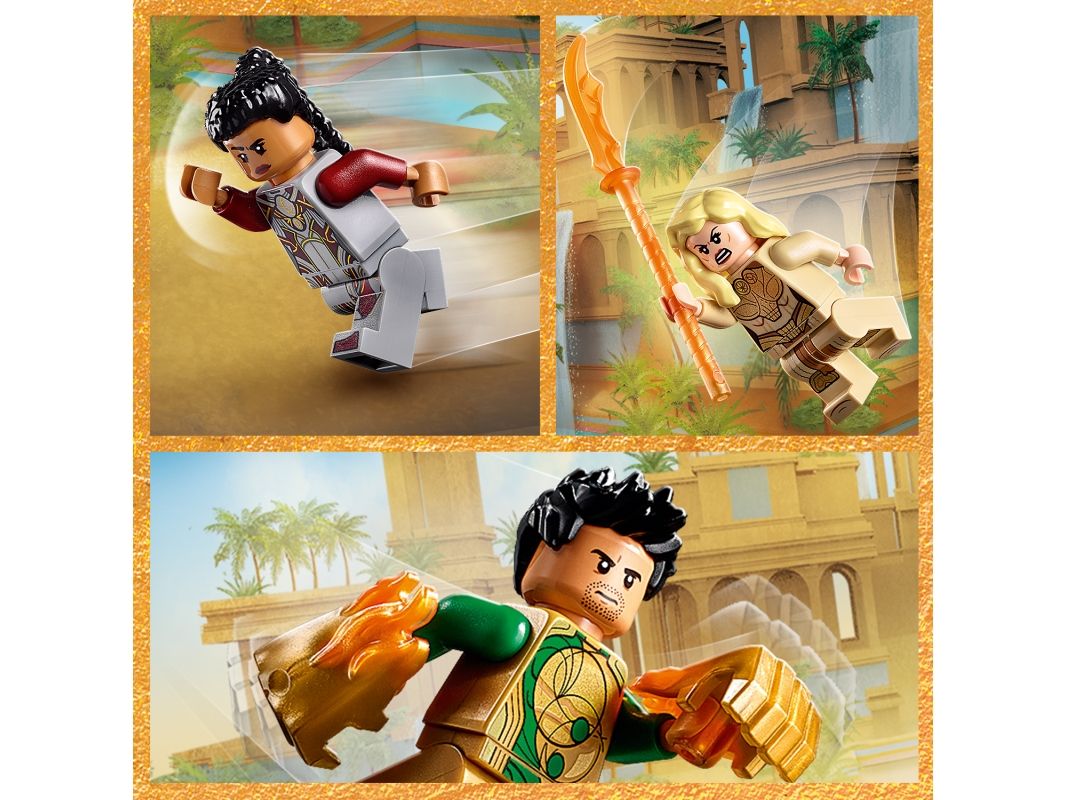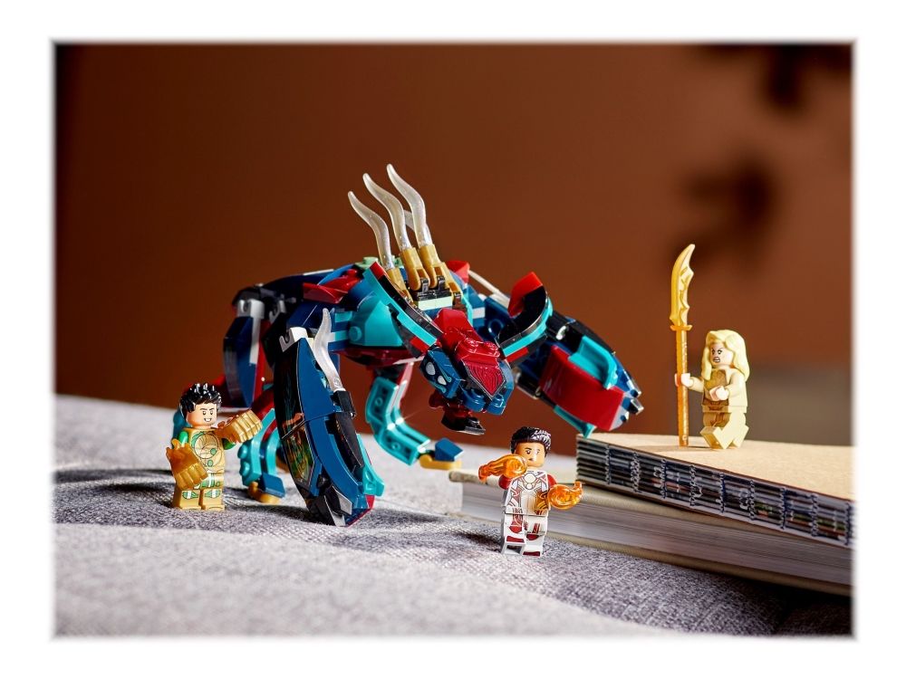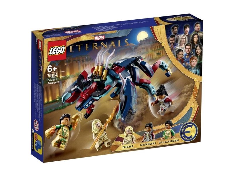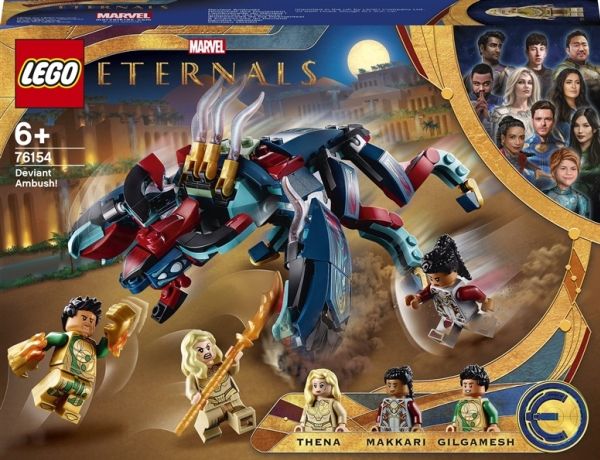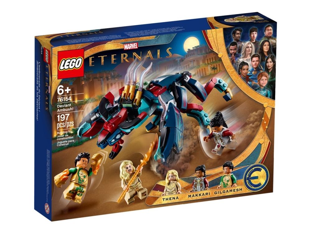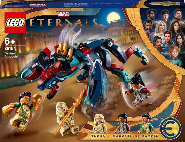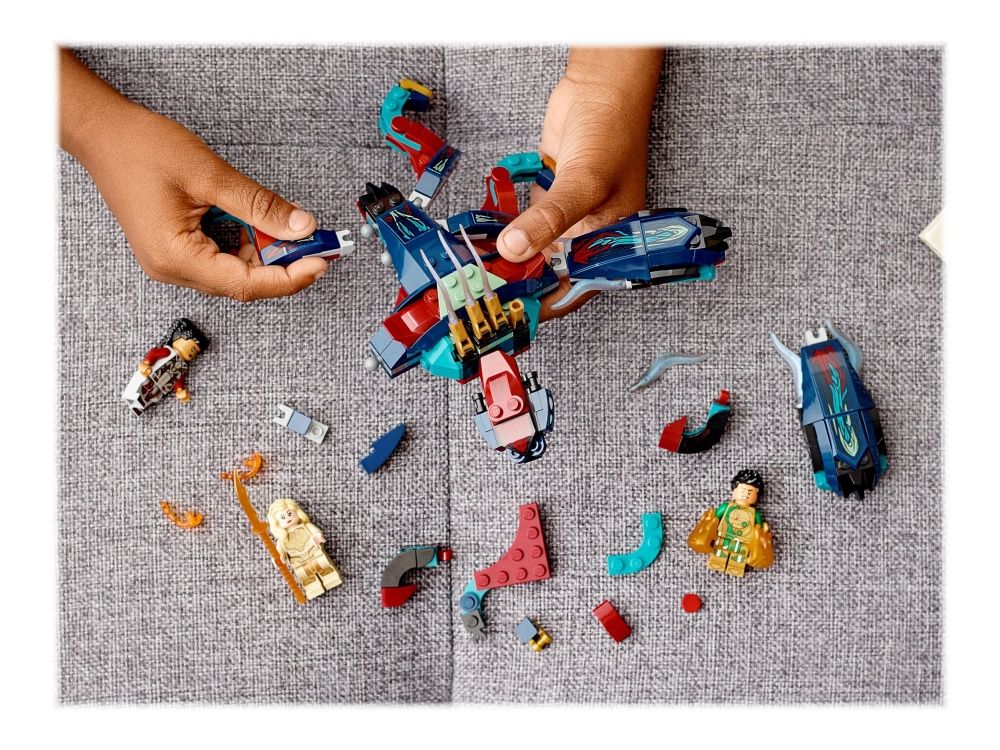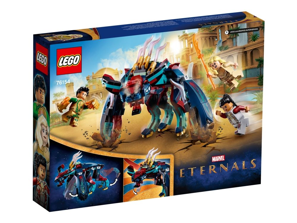 2. Inkluderer tre LEGO® Marvel Eternals superhelt-minifigurer – Thena, Makkari og eksklusive Gilgamesh – en bevegelig, seksbeint Deviant med munn som kan åpnes og lukkes, dolk, våpenhanske og skyter.
