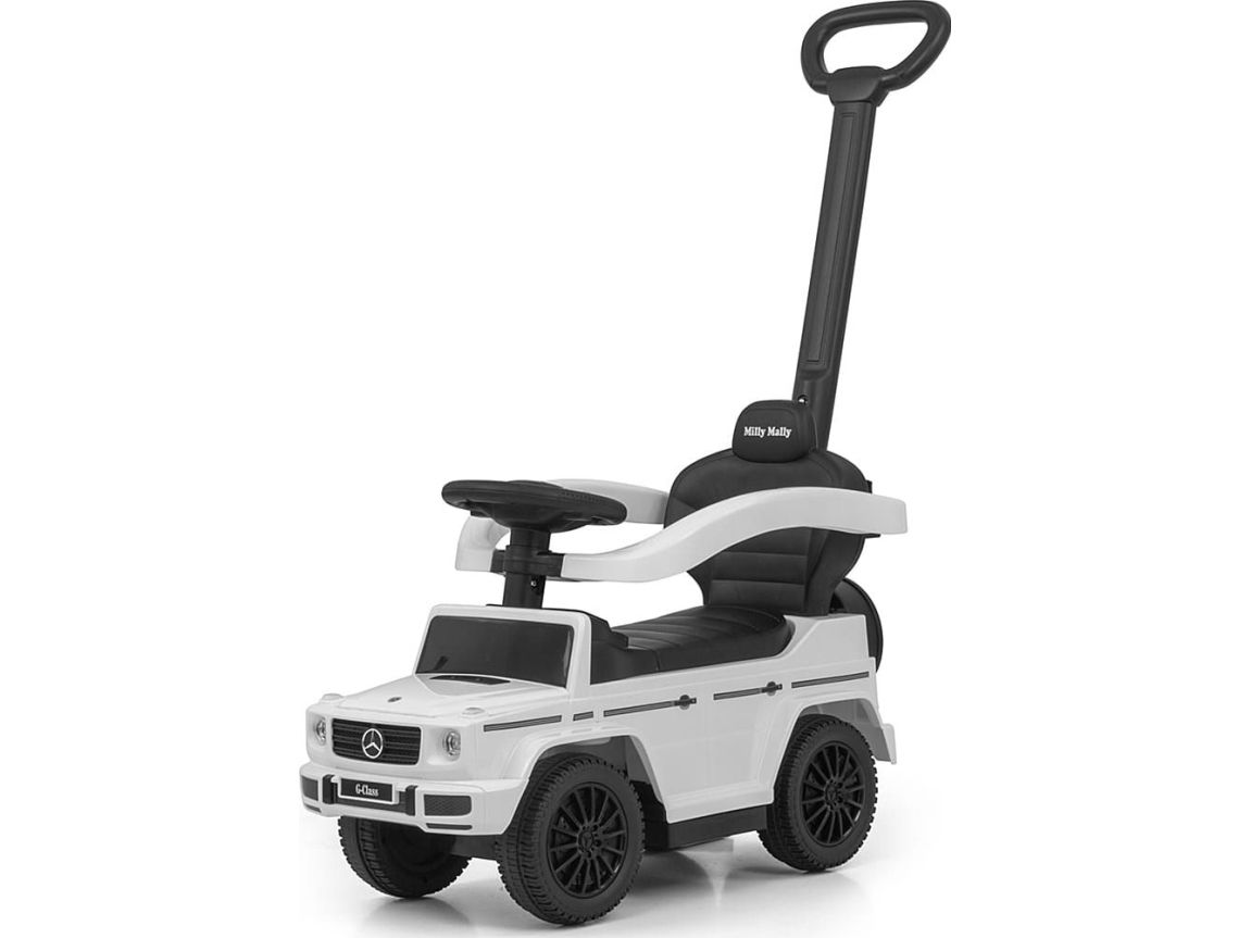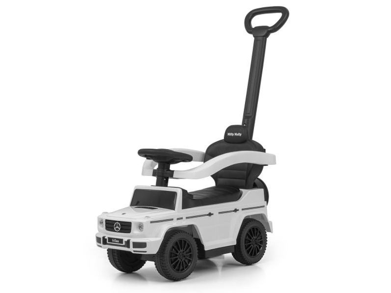 Motoroleris su kreipiančiąja juosta MERCEDES G350d Milly Mally baltas