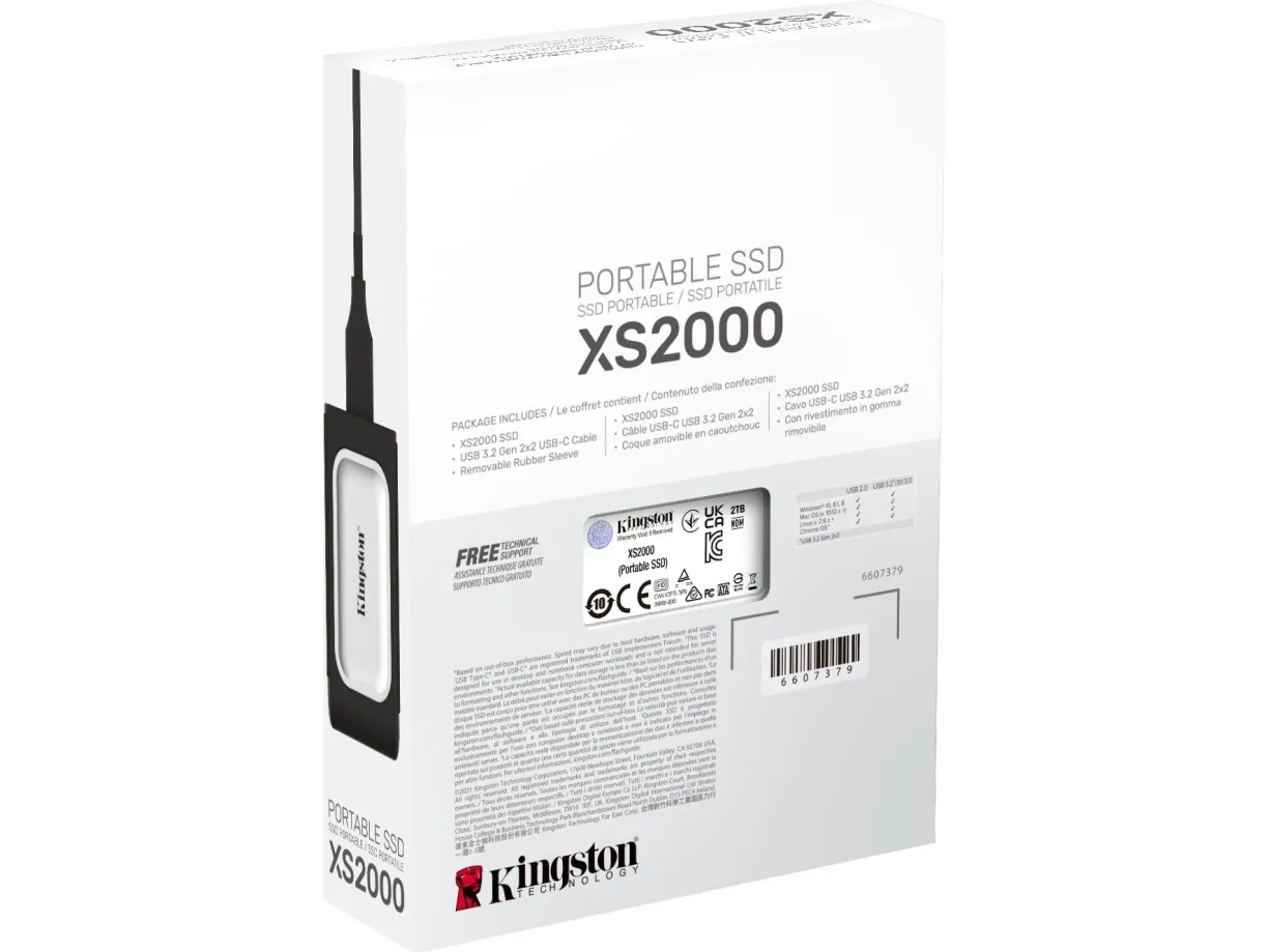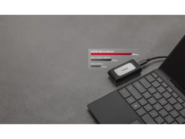 XS2000 delivers lightning-fast transfer speeds up to 2,000MB/s giving users enhanced productivity with little interruption. XS2000 offers remarkable performance and capacities 2TB to offload and edit high-res images, 8K videos and large documents in a flash. The drive connects with USB Type-C allowing content creators to easily store and access their files anywhere on a PC or mobile device. At nearly half the size of a typical portable SSD, XS2000 includes a removable ruggedized sleeve and IP55-rating to withstand water and dust, making it the perfect companion for on-location adventures whether you go from work to play to passion projects.