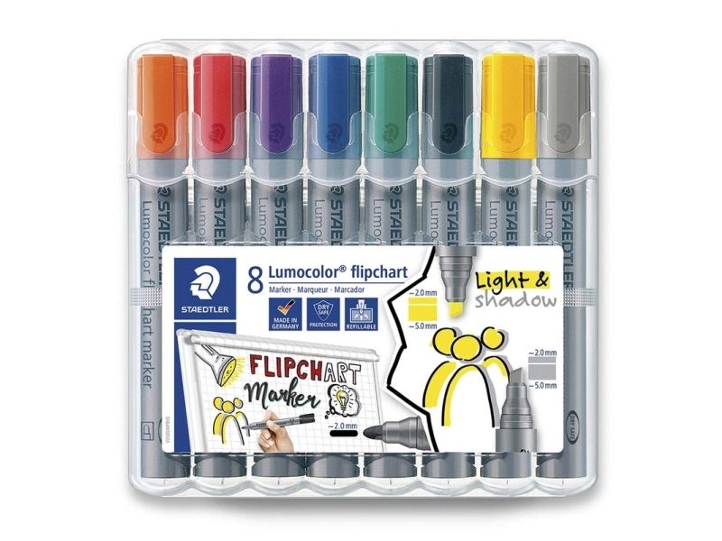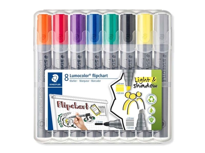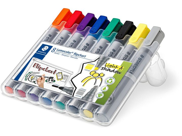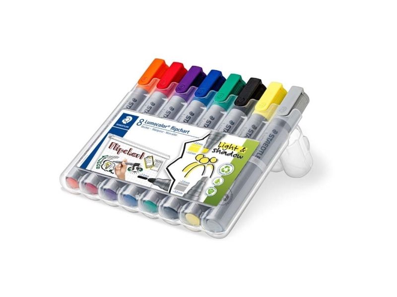 Marker Staedtler® Lumocolor® Flipchart Light & Shadow - etui med 8 stk. ass. farver