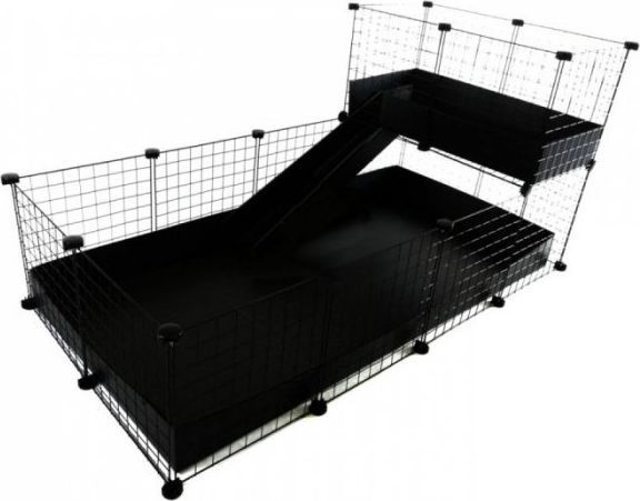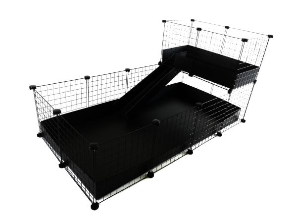 C&C modulbur, en-etasjes 4x2 + Loft 2x1 + Rampe, svart, for marsvin, 149cm x 77cm