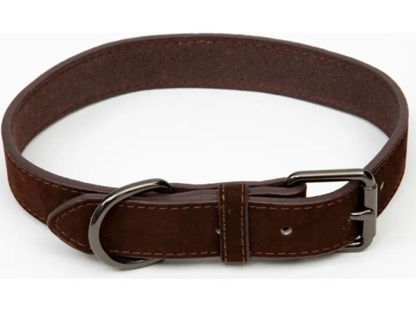 Paw Love - Halsbånd ruskind hund (Large) - Mørkebrun
