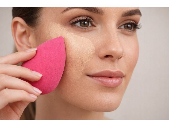 Beauty Blender kan brukes både tørr og fuktig, men gir det mest naturlige resultatet når den er litt fuktig – for en jevn finish uten striper eller skarpe kanter.