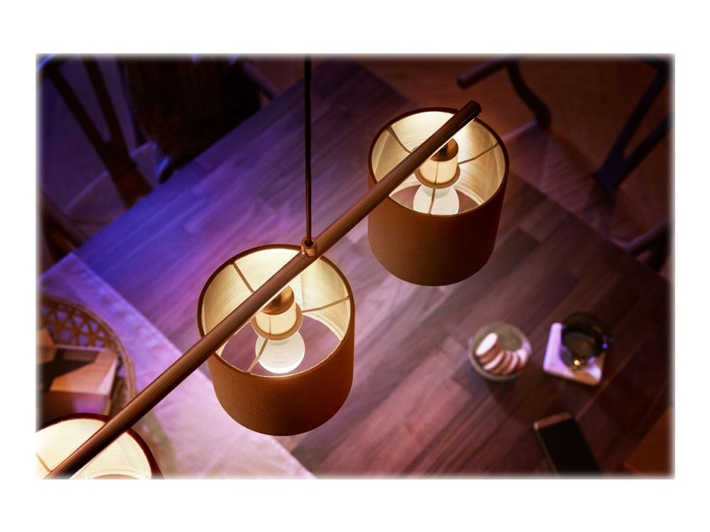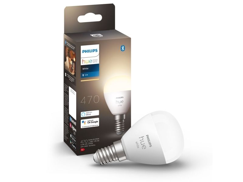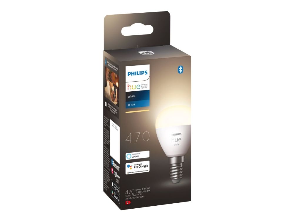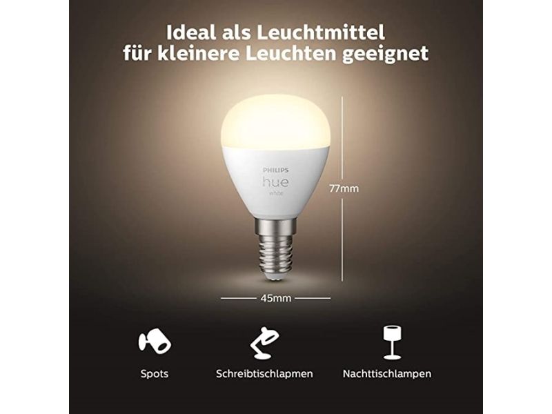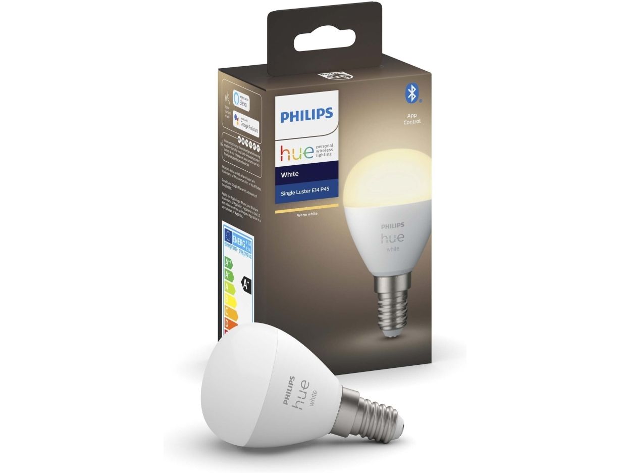 Koble sammen dine minste lamper og armaturer - f.eks. vegg-, bord- eller skrivebordslamper - med Philips Hue White-pæren av typen P45 E14. Denne lille dimbare pæren avgir varmhvitt og kan styres i ett rom via Bluetooth. Koble til Hue Bridge for å få tilgang til alle de smarte belysningsfunksjonene.