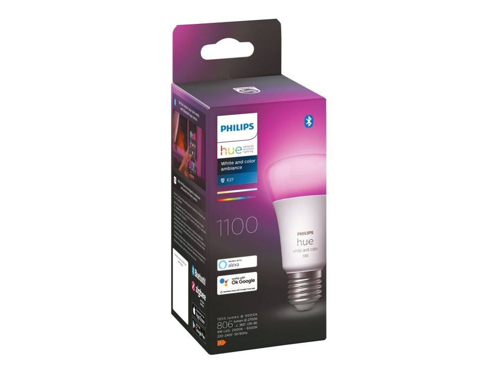 Med millioner av nyanser av hvitt og farget lys, skaper du den rette stemningen øyeblikkelig med denne smarte LED-lyskilden (E27). Lyskilden passer til de fleste armaturer, slik at du kan få smartbelysning hvor som helst i hjemmet.
