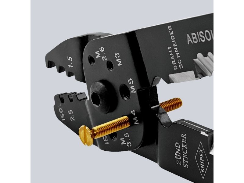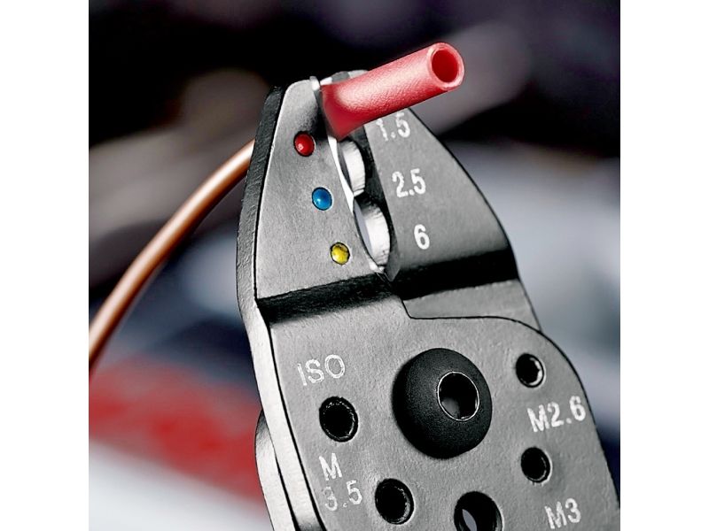 . Med gevindhuller til afskæring af Cu- eller Ms-gevindtapper M 2,6; M 3; M 3,5; M 4 og M 5. Skruet led for høj stabilitet og ensartet løb.