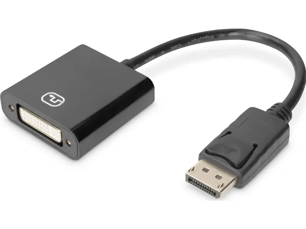 The active DisplayPort Adapter from DIGITUS converts DisplayPort signals to DVI signals. Resolutions in Full HD (1080p) are supported with frequencies of up to 60 Hz. HDCP 1.3 and 24 bit DeepColor are also supported, as well as DVI 1.0. The installed preamplifier and double shielding ensure first-class transmission qualities to HD display of all kinds. The DVI plug is fully utilized (24+5).