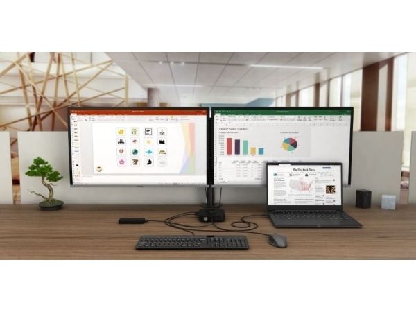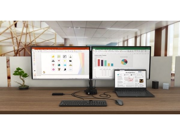 USB-C-dockingstasjon med støtte for opptil 2 eksterne skjermer med 4K-oppløsning. Stasjonen er kompatibel med alle bærbare datamaskiner som er utstyrt med en USB-C- eller Thunderbolt 3-port. 6 x USB-porter, pålitelig og rask tilkobling til bedriftsnettverket takket være en integrert LAN-port og støtte for installasjon bak en skjerm gjør dokkingstasjonen til en ideell partner for profesjonelle. Og selvfølgelig kan stasjonen lade den bærbare datamaskinen eller nettbrettet med opptil 100 W.