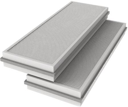 SYSTEMAIR Panelfilter, sæt i filterklasse F7/M5 til VSR300. Tilluft F7 (ePM1 60%) 397x277x24 mm og fraluft M5 (ePM10 50%) 398x210x24 mm.