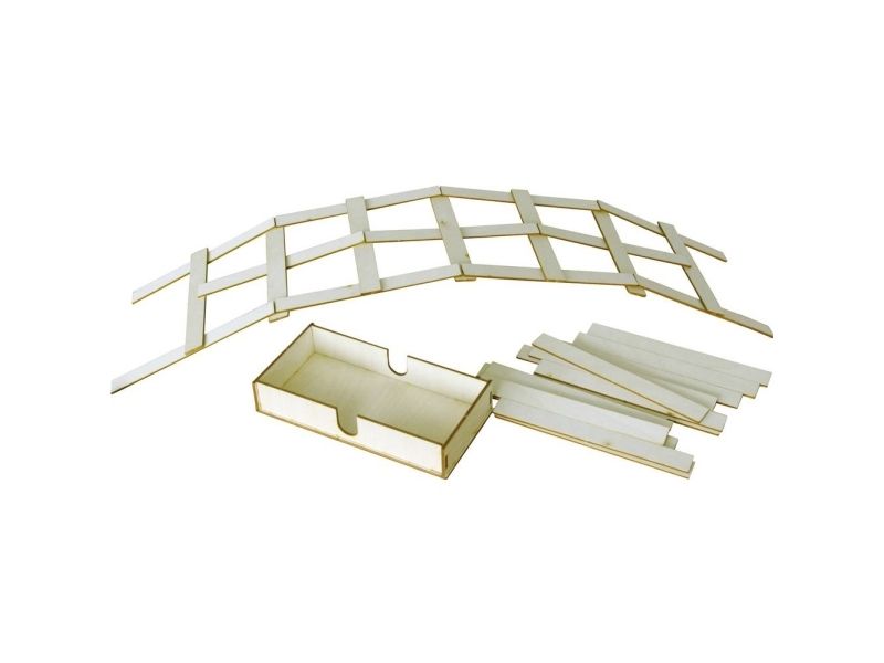 Efter opbygningen kan broen nemt afmonteres igen, og enkeltdelene opbevares i den medfølgende opbevaringsboks. Opbevaringsboksen limes sammen med lidt lim og en lille smule smart på få minutter. Og til alle, der ikke har en trælim derhjemme, har vi givet byggesættet en trælim.