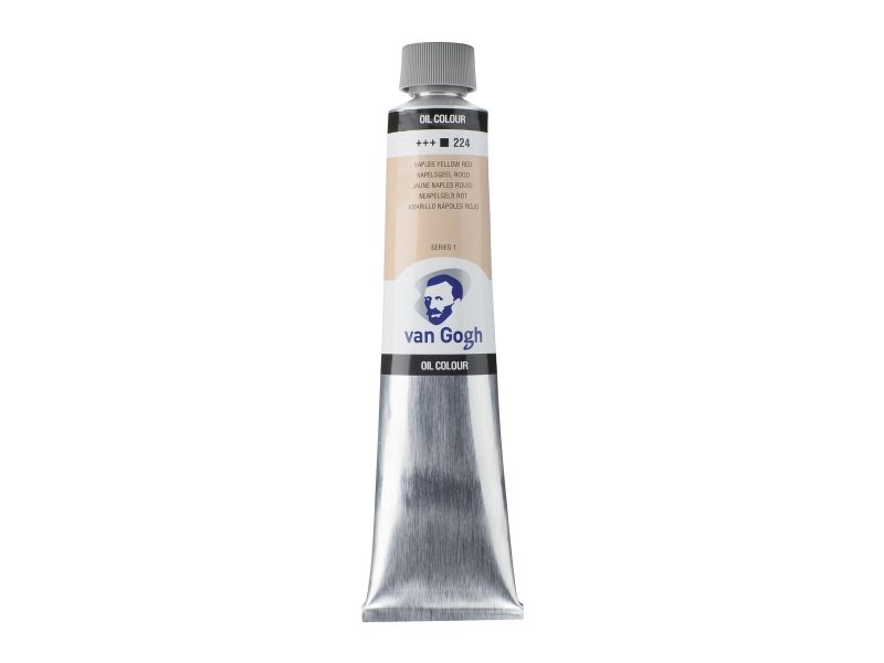 When looking for a better oil colour, this Dutch-crafted Van Gogh range is for you. A buttery oil that features excellent tinting strength, a high level of pigmentation for intense colours, and a uniform degree of gloss and thickness amongst colours. Easy to mix and use. These oils are great for beginners, students in advanced studies, and working artists. This 200ml tube of opaque Naples Yellow Red 224 is formulated with pigment(s) PW6/PO43/PBr24 and has a lightfastness rating of +++ (100+ years under museum conditions). Series 1.