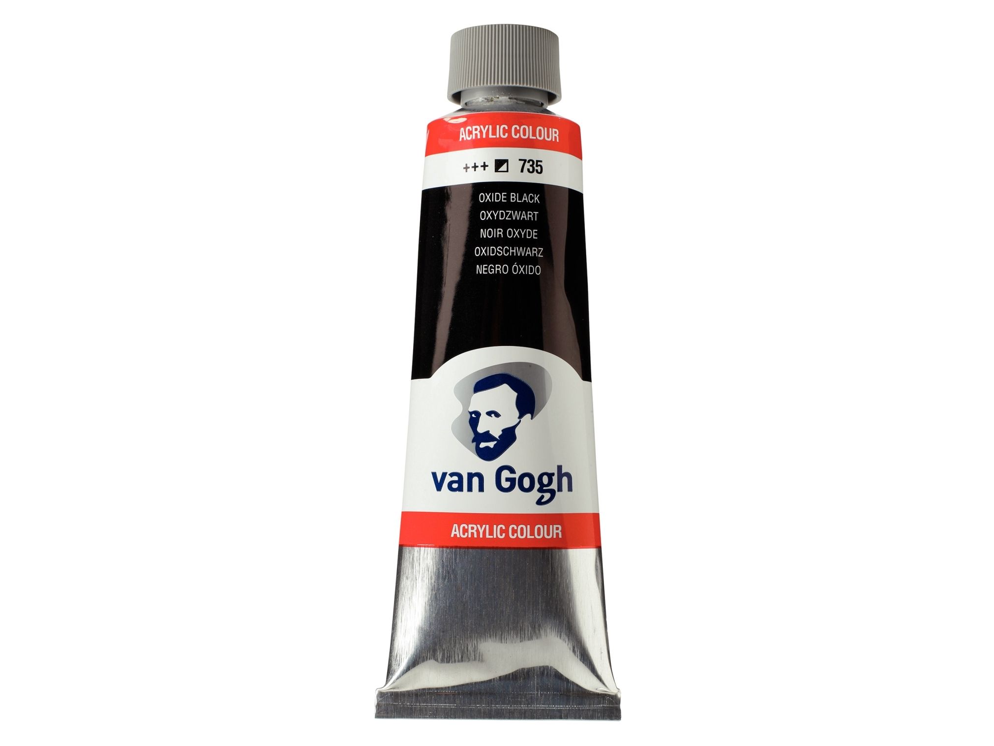 Van Gogh acrylic colour is made with high-quality pigments under superior Dutch quality standards. This student-artist grade acrylic paint can be used straight from the metal tube, or thinned with water. Due to the short dry time, it is easy to paint layer upon layer quickly. The heavy-body paint has high pigment load for strong, intense colours for working with artist paint brush or palette knife. Van Gogh acrylic colour is available in 40 colours. This 150ml tube of Oxide Black 735 is formulated with pigment(s) PBk11, and has a lightfastness rating of +++ (100+ years under museum conditions).