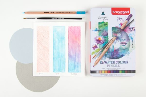 12 high quality watercolour pencils with a strong, thick 2.9 mm core manufactured from good quality pigments for very good colour transfer and complete solubility in water. Can be applied both wet and dry. Paintbrush included.