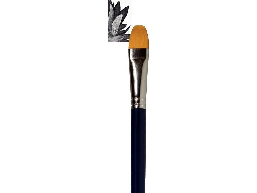 Crafted with care and shaped by hand, this oil and acrylic brush has a flexible hair bundle resistant to wear. The flexibility of the golden synthetic hair bundle makes this brush especially great for