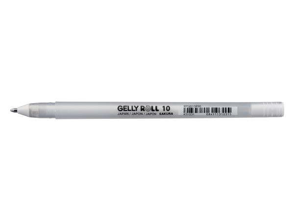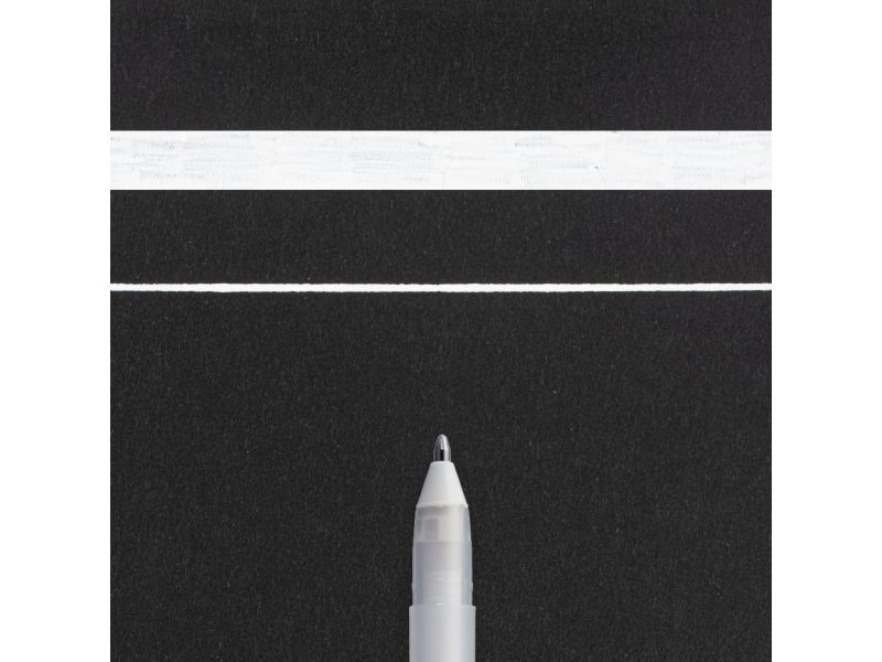 The Basic White Gelly Roll pen with the nib size 10 Bold (1.0mm ball / 0.5mm line) is ideal for adding bright white lines to elevate your art to another level using bold lines and unique bold marks.