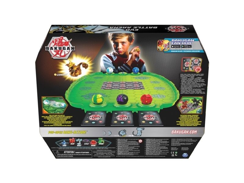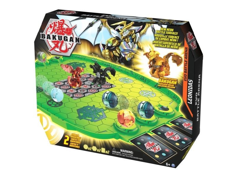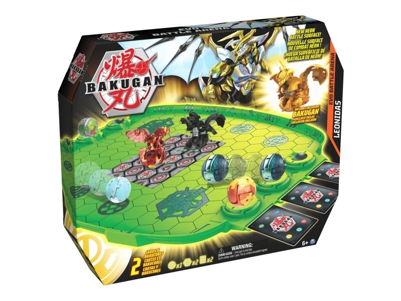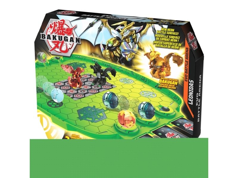 Take your Bakugan game to the next level with the Bakugan Evo Battle Arena! This arena is the ultimate way to brawl with your friends. The bumpers makes sure your balls always stay on court and the hexagonal grid makes laying out your BakuCores easier and faster than ever. This set includes an exclusive Leonides Bakugan you won't find anywhere else. Roll your Bakugan into the field and experience the exhilarating Baku-action! Feel the thrill of Bakugan Evolution come to life with the Bakugan Evo Battle Arena. Mix and match to create your favourite combination and deliver incredible damage in battle. Use the included Ability cards for even more ways to play and earn bonuses! Add all the Season 4 Bakugan Evolutions toys (as seen on NETFLIX) to your collection and build your own dream team! Who will leave the Bakugan Battle Evo Arena victorious? BAKUGAN BRAWL!