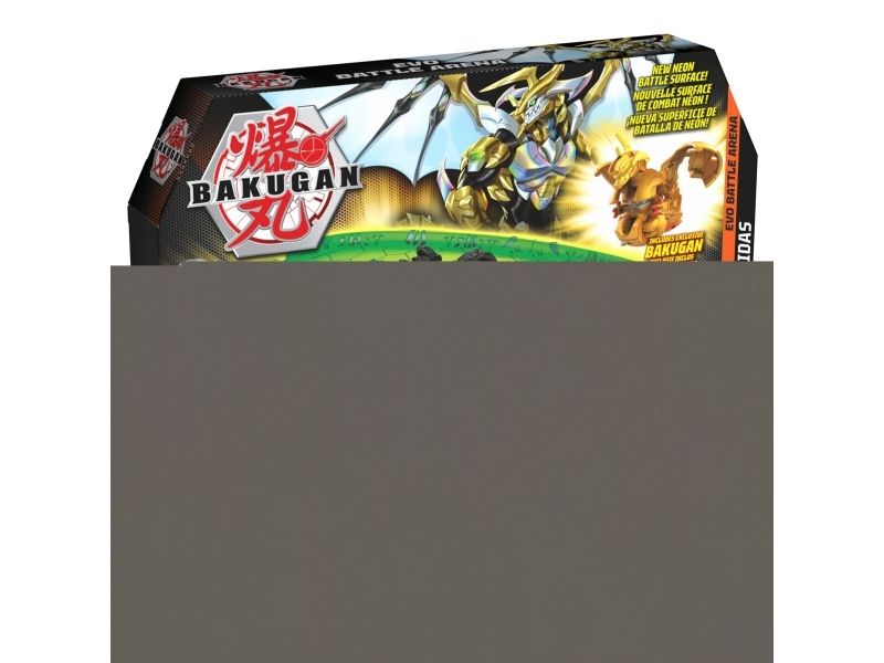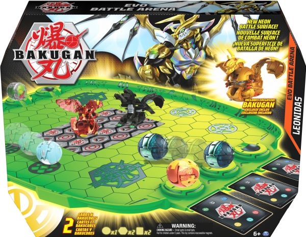 Includes: 1 Evo Battle Arena, 1 Bakugan, 2 BakuCores, 1 Character Card, 1 Gate Card, 1 Bakugan Toy Battling Rules Book, 1 Instruction Sheet