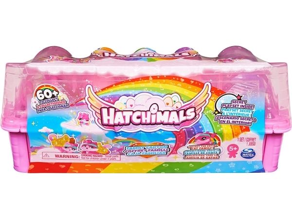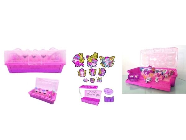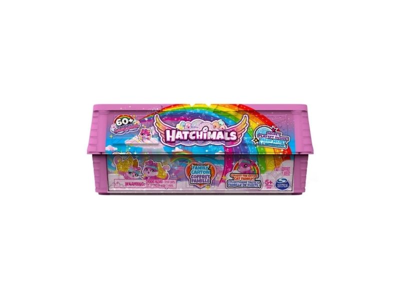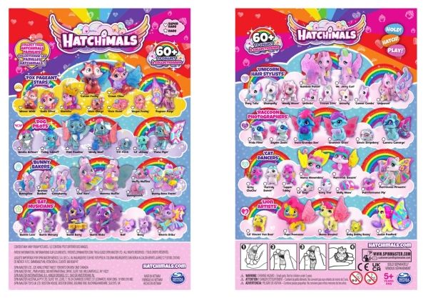 Contents/equipment: 10 Hatchimals animal figures, 2 accessories, 1 foldable egg carton play set, 1 decorative background made of sturdy cardboard, 1 collection overview, 1 set of instructions