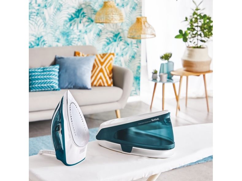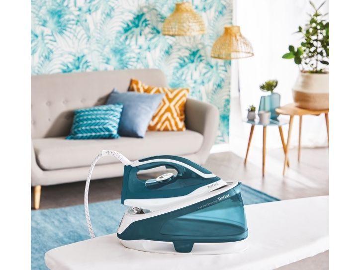 Tefal Express Essential SV6115 - Dampstrykejern med automatisk slukking - såleplate: Ceramic Xpress Glide - 2200 W - hvit/turkis