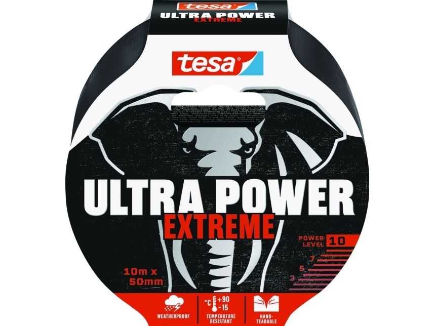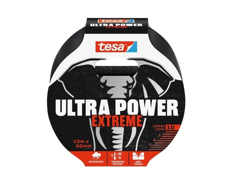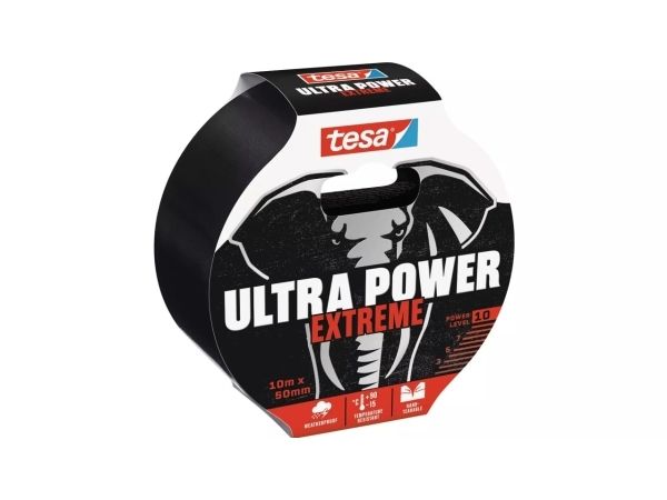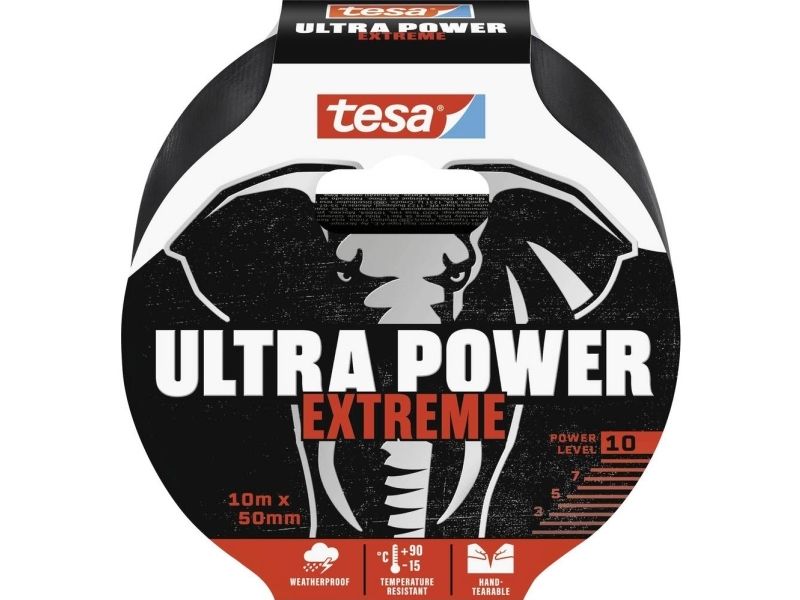 TESA Ultra Power Extreme, Sort, Reparering, PET-filt, Gummi, Metall, PVC, Ru, Smooth (glatt), 10 m