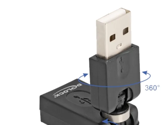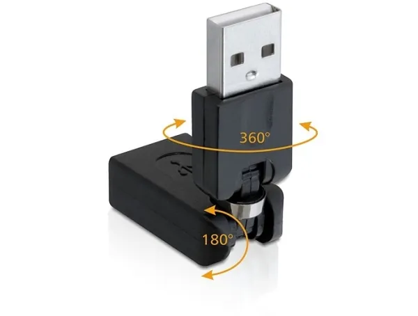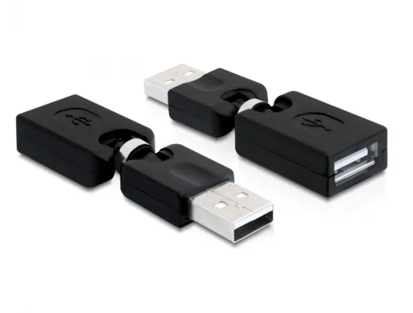 Delock Rotation adapter - USB-adapter - USB (hann) til USB (hunn) - USB 2.0 - 6.5 cm - svart